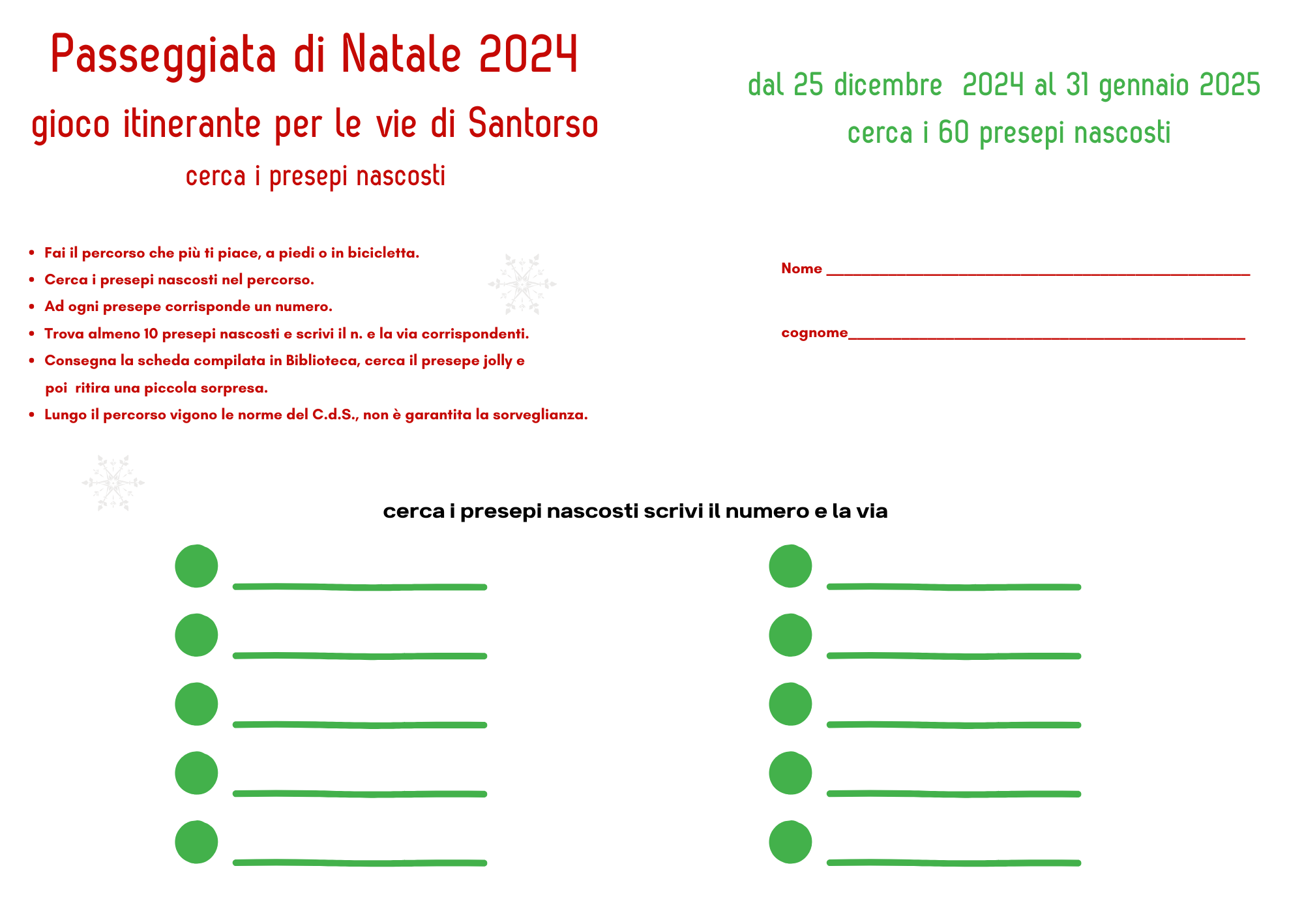 - Consegna la scheda compilata in Biblioteca, cerca il presepe jolly e poi ritira una piccola sorpresa.
