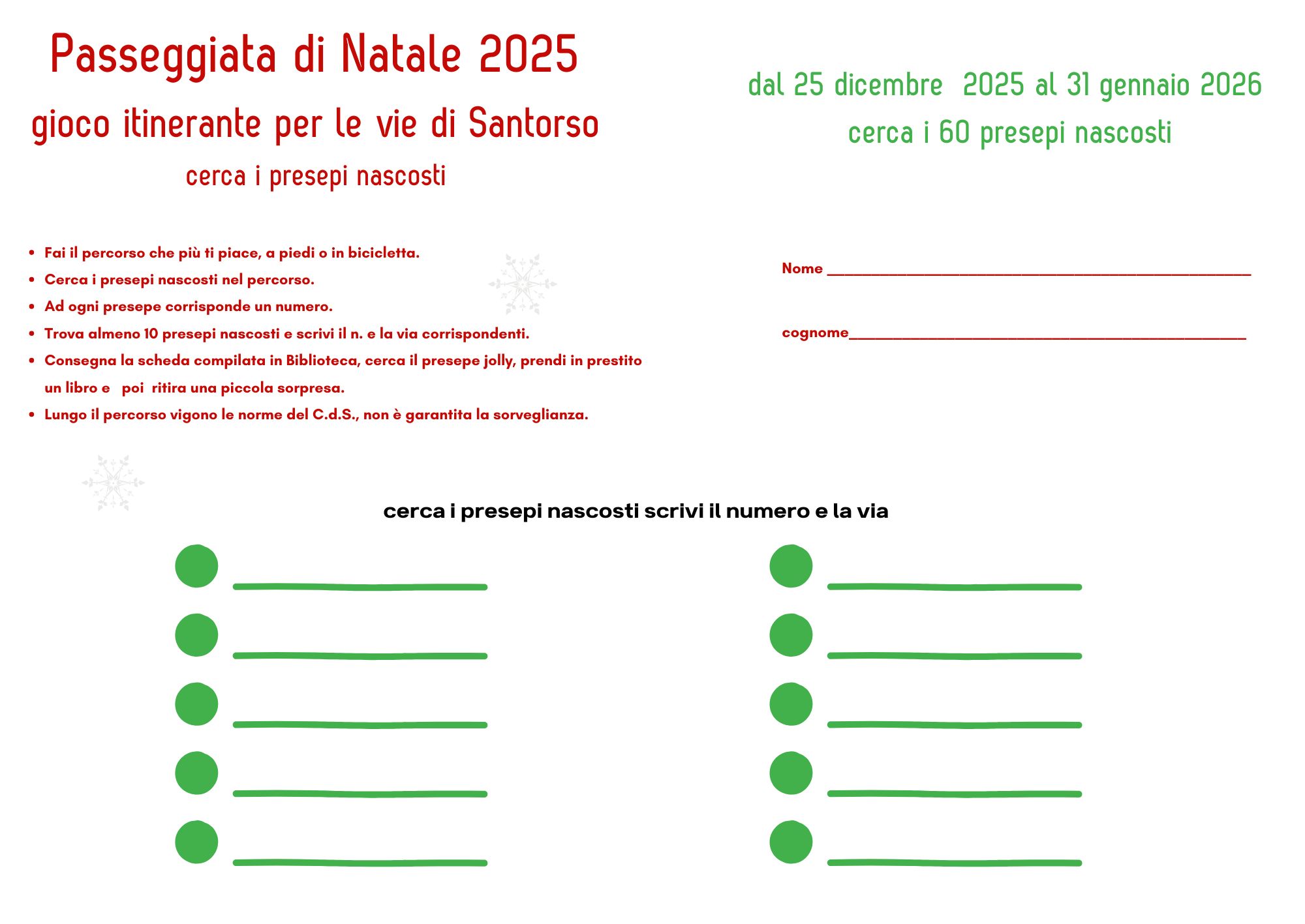 - Consegna la scheda compilata in Biblioteca, cerca il presepe jolly, prendi in prestito un libro e poi ritira una piccola sorpresa.