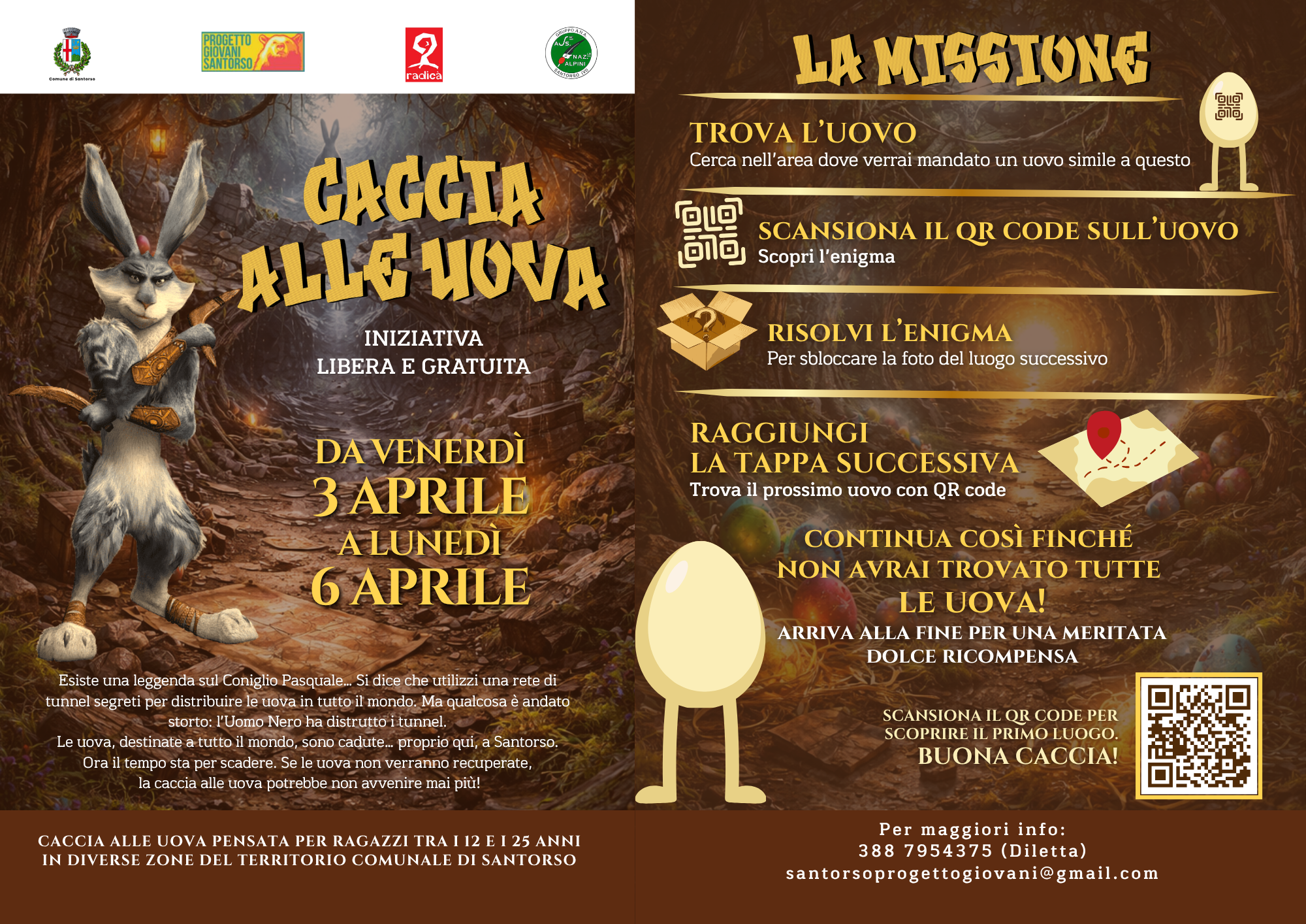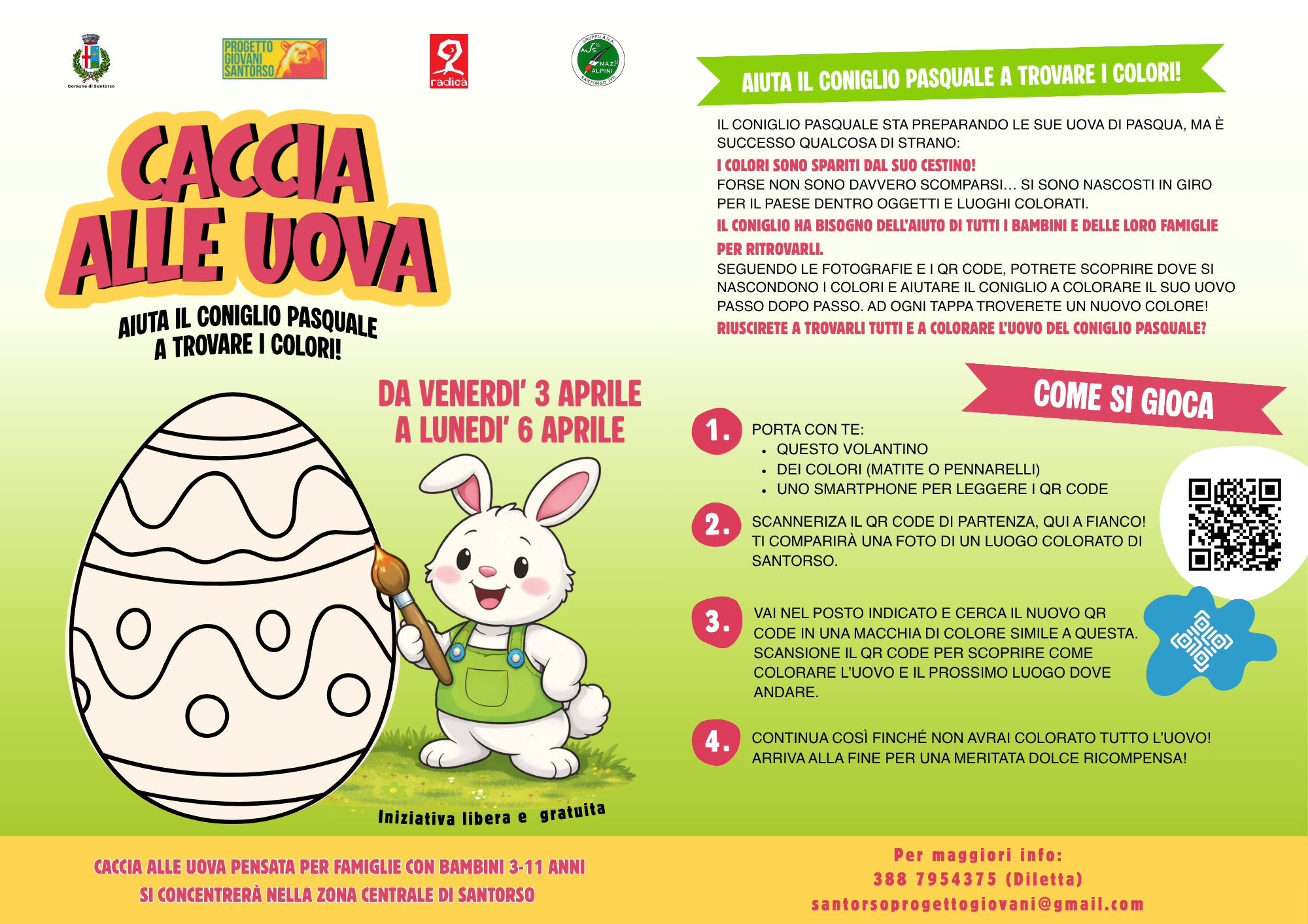 Trovate istruzioni dettagliate per partecipare alla Caccia alle uova nelle due versioni, nei rispettivi volantini